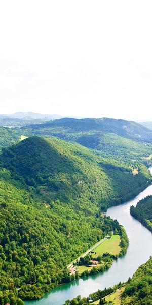 Le département de l’Ain est partagé entre des plaines et bas plateaux (la Bresse et la Dombes) à l’ouest du département et des zones montagneuses appartenant à l’extrémité sud du Jura dont le crêt de la Neige est le point culminant à 1718 m d’altitude. Le pays de Gex qui relie le Bugey à l’agglomération de Genève par une cluse dont l’altitude varie entre 300 et 600 m.
